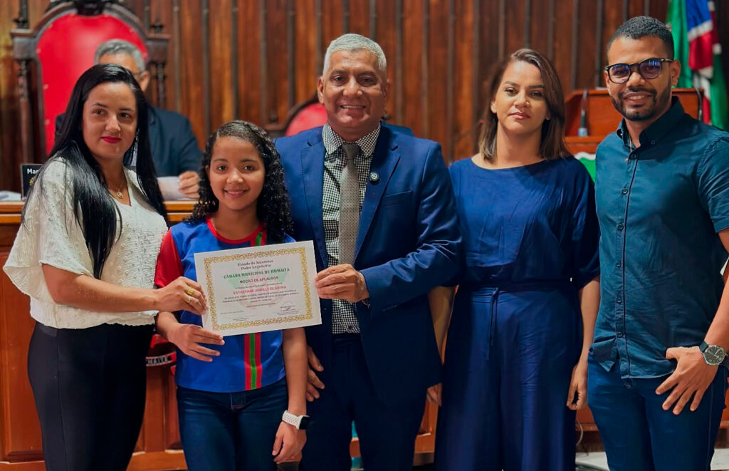 Presidente da Câmara, Manoel Domingos, faz homenagem a Aluna por destaque no projeto Princesa Madeira em Humaitá
