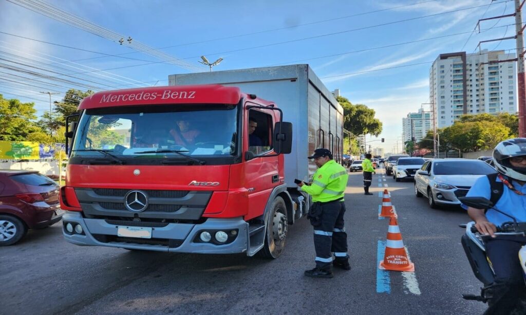 Nove caminhões são notificados por transitar fora do horário em avenida de Manaus