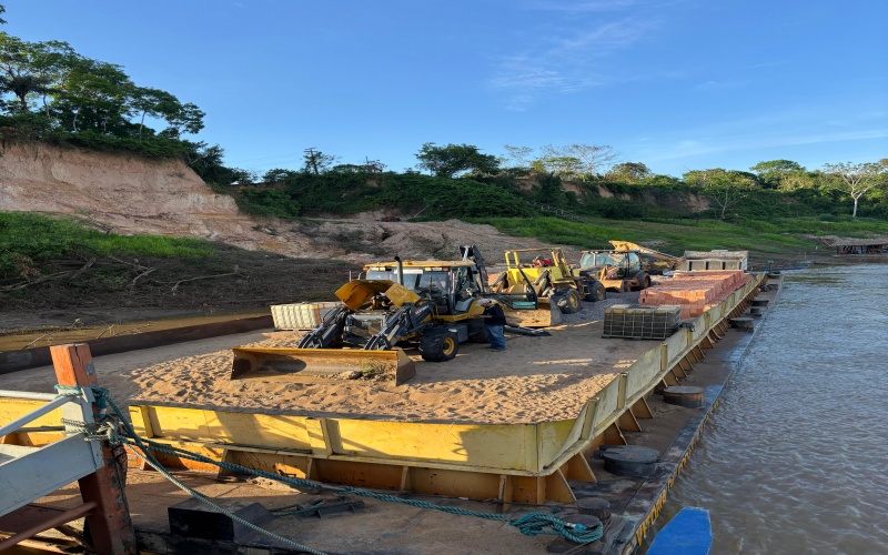 Programa Minha Casa Minha Vida: Balsa com materiais para a construção de casas populares chega ao Distrito de Auxiliadora zona rural em Humaitá