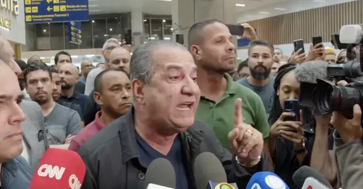 Depois de depoimento, o pastor foi recebido por apoiadores e membros da imprensa no Aeroporto do Galeão