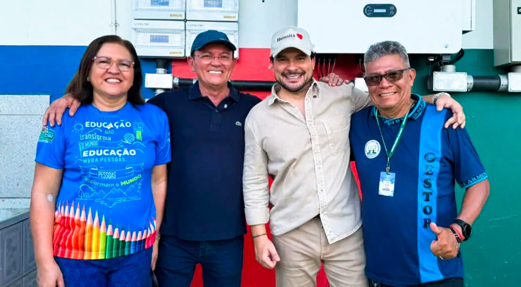 Capitão Alberto Neto e prefeito Dedei Lobo entregam o sistema de energia solar, instalado em quatro escolas da rede municipal em Humaitá