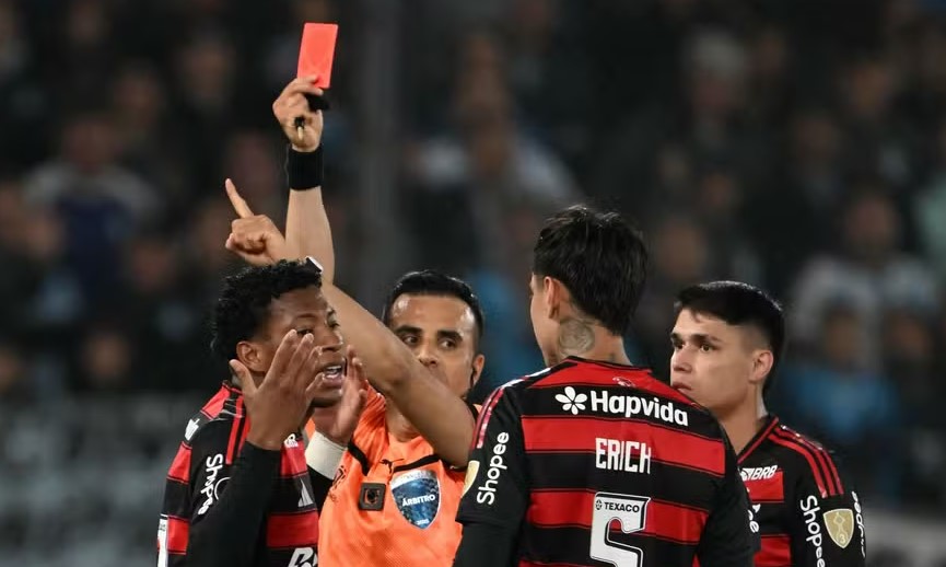 Conmebol divulga áudio do VAR na expulsão de Plata em Racing x Flamengo