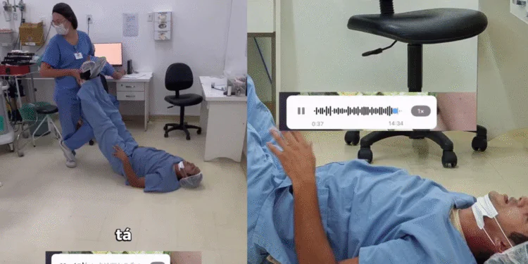 A cena foi registrada em vídeo por familiares que aguardavam do lado de fora da sala de parto