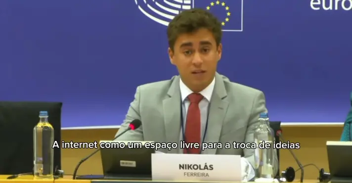 Nikolas Ferreira denuncia censura brasileira em discurso no Parlamento Europeu
