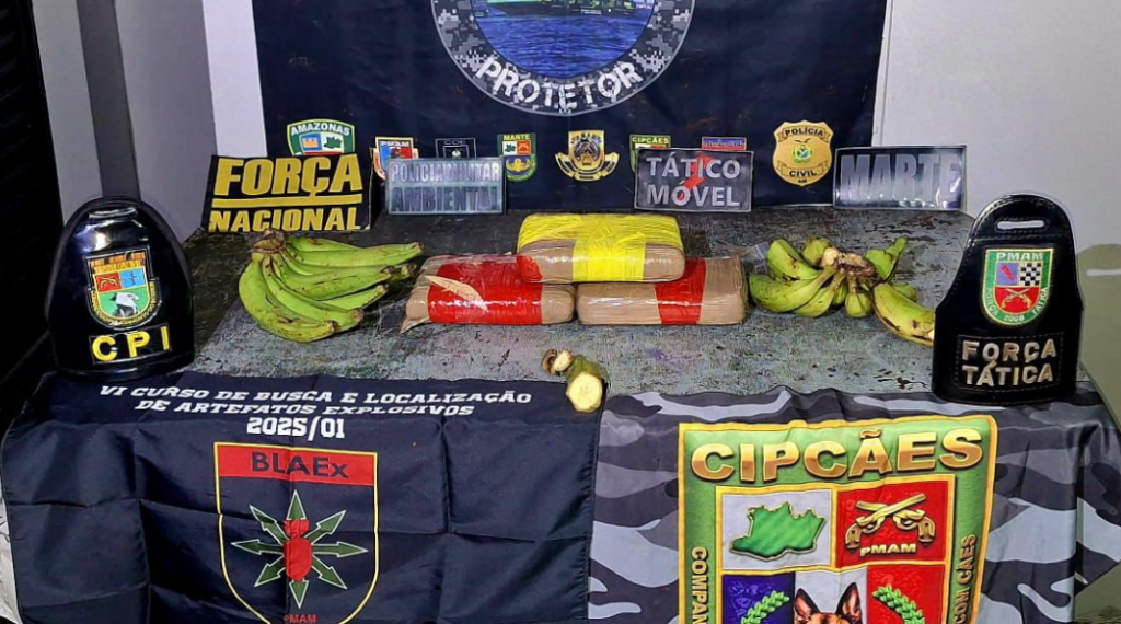 Base Arpão 2: PMAM apreende drogas escondidas em saco de bananas e caixas de equipamentos de informática