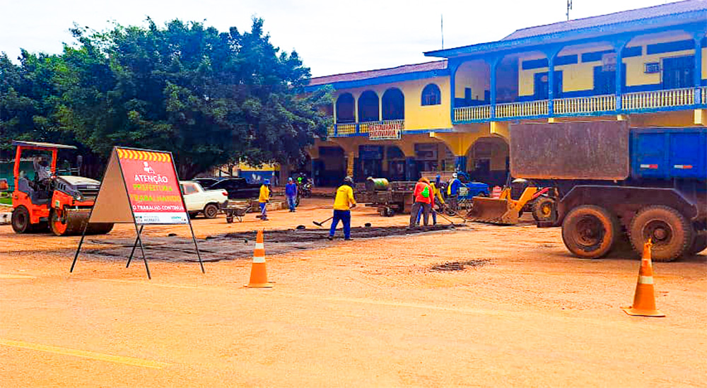 Obra no pátio da estação rodoviária reforça programa de recuperação das ruas; prefeitura, secretaria de infraestrutura, empresários do transporte e moradores destacam avanços na mobilidade urbana e na imagem do município.