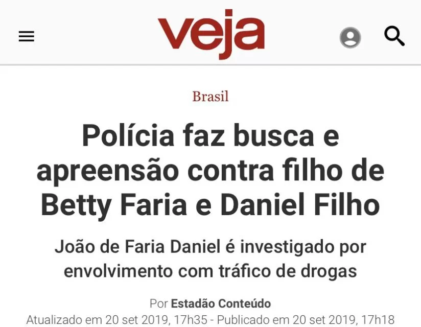 O que Betty Faria não esperava era que os internautas fossem buscar em sua história algo que a comprometesse por conta dessa postagem. Ele conseguiram encontrar uma matéria da revista Veja, de 2019, noticiando que o filho da atriz foi alvo de busca e apreensão pela polícia durante uma investigação de tráfico de drogas. Os comentários a respeito do posicionamento da artista foram bastante críticos.