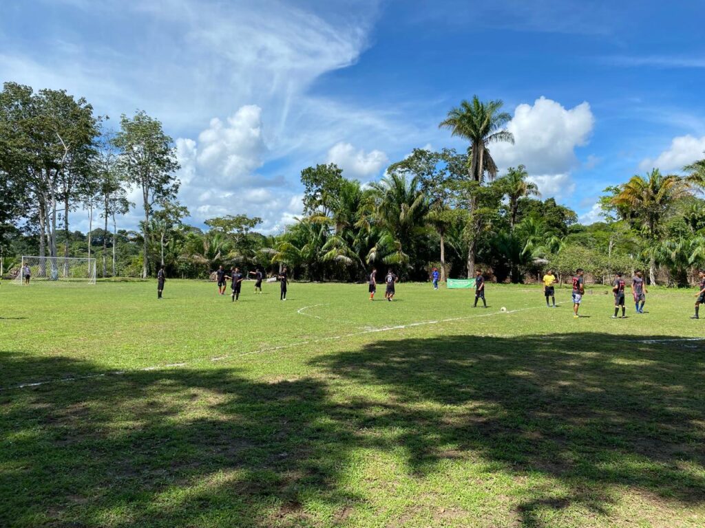 E como toda população que gosta muito de futebol, pois havia dois campos onde ocorria ao mesmo tempo as partidas masculino e feminino com uma grande torcida muito animada e comemorando a cada gol.