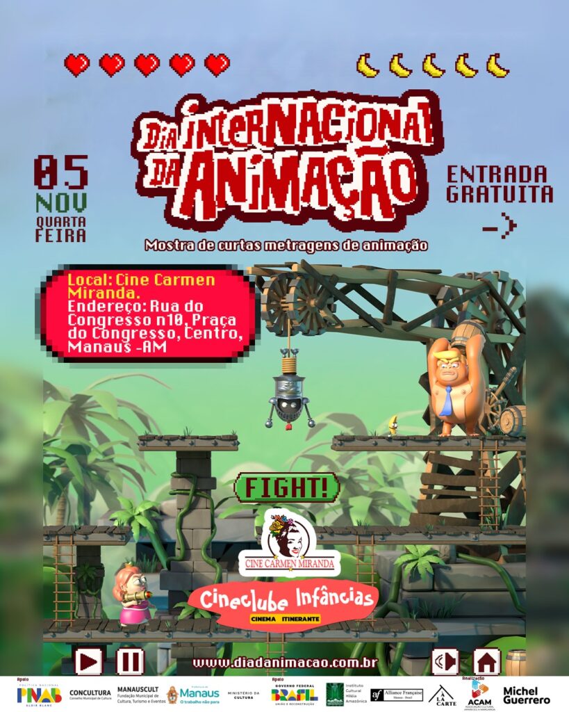 O Cine Carmen Miranda e o Cineclube Itinerante Infâncias promovem na próxima quarta-feira (5), durante o dia todo e pela segunda vez, o Dia Internacional da Animação (DIA), que é uma mostra de curtas-metragens de animação com exibições que acontecem em várias cidades de norte a sul do Brasil.
