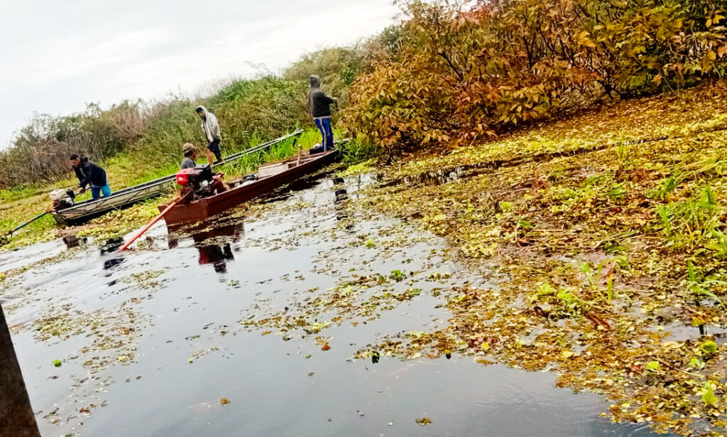 Na comunidade Pelados, localizada no Lago do Antônio — uma das áreas mais distantes e de difícil acesso do município — equipes da prefeitura, com apoio direto de moradores, realizaram um verdadeiro mutirão para remover as tapagens.