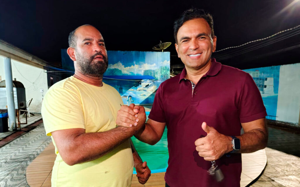 Entre os encontros realizados durante a noite, Felipe Lobo esteve com uma das lideranças mais conhecidas do município, popularmente conhecida pelo apelido de “Pistola”, figura respeitada nas articulações comunitárias e que possui forte influência entre moradores de diversas áreas da cidade.
