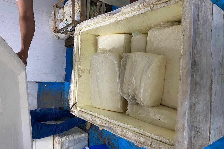 “E no dia de hoje, nós encontramos em uma embarcação cerca de 300 quilos de queijo de coalho e cerca de dez quilos de anéis de lula sem rotulagem e sem serviço de inspeção, impossibilitando a garantia de que esse produto não faria mal à sociedade”, relatou.