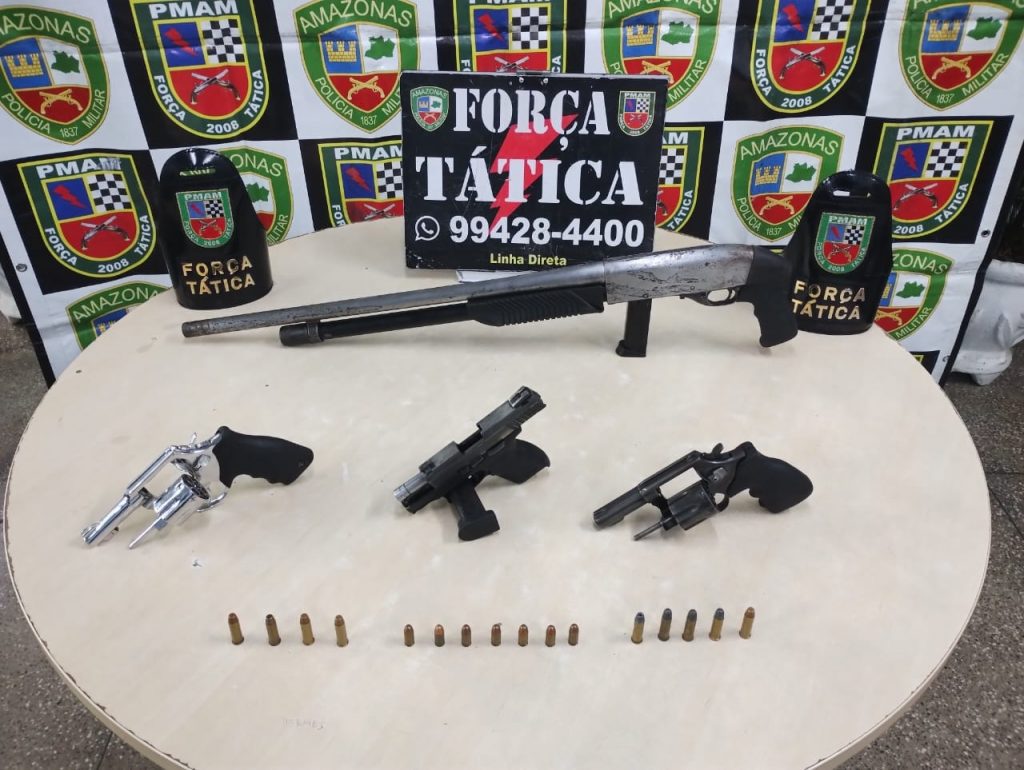 Policiais militares da Força Tática (FT), em ações distintas, prenderam, entre a noite de sexta-feira (16/09) e a madrugada de sábado (17/09), um homem, de 43 anos, por porte ilegal, e apreenderam oito armas, nas zonas norte e leste de Manaus.