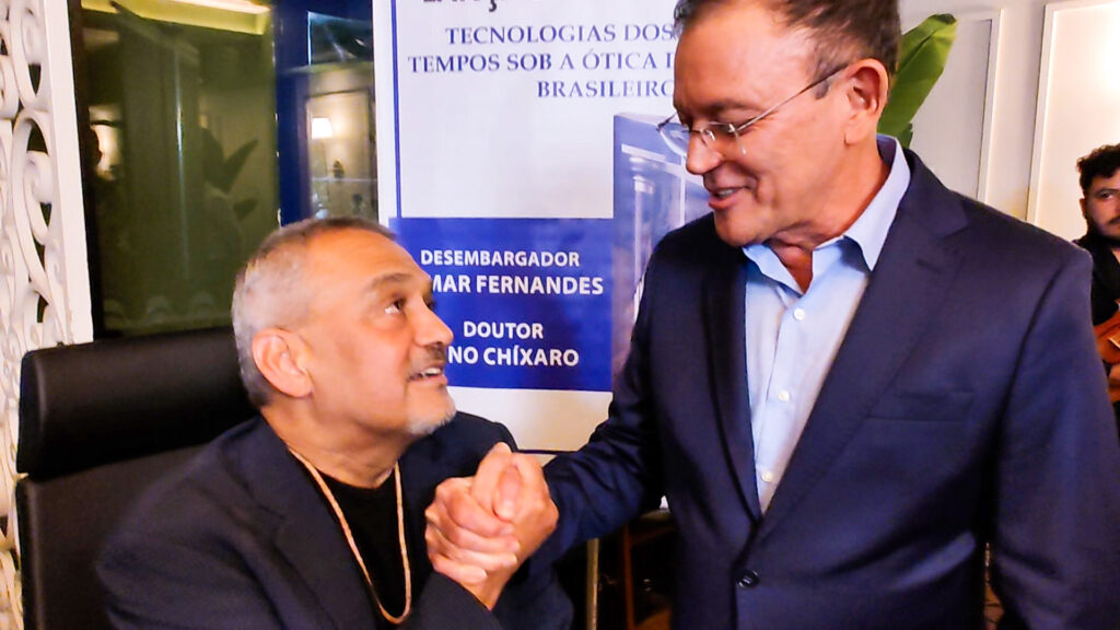Acompanhado de seu irmão, Felipe Lobo, o prefeito fez questão de prestigiar o lançamento promovido pelo desembargador Jomar Fernandes e pelo advogado Lino Chíxaro — dois nomes que, ao longo de suas trajetórias, mantêm relação próxima com Humaitá.