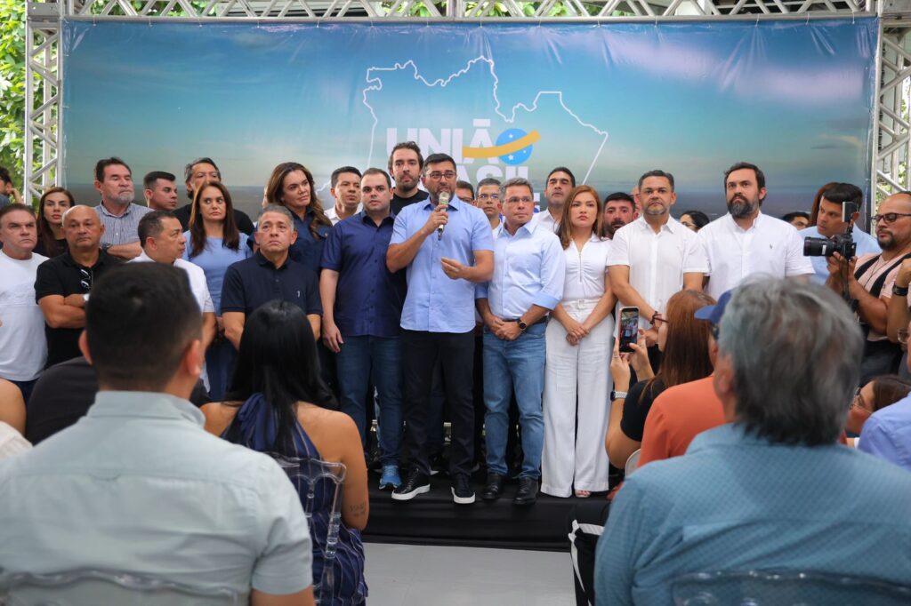 O governador e presidente estadual do União Brasil, Wilson Lima, anunciou nesta segunda-feira (2), na sede do partido em Adrianópolis, Manaus, que permanecerá no cargo até 5 de janeiro de 2027, quando passará oficialmente a faixa para seu sucessor. O anúncio reuniu 38 prefeitos, 6 vice-prefeitos, 27 ex-prefeitos, 17 vereadores, 20 deputados, 7 lideranças do interior, além de secretários estaduais, integrantes da executiva do União Brasil e representantes de partidos aliados.